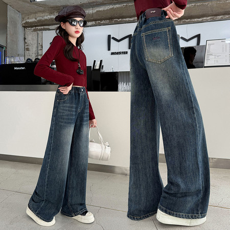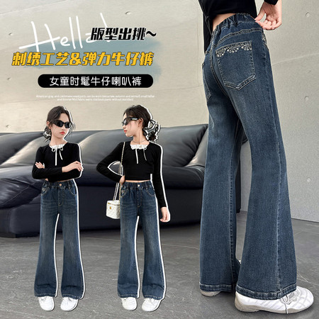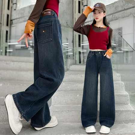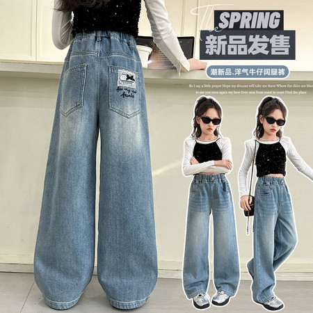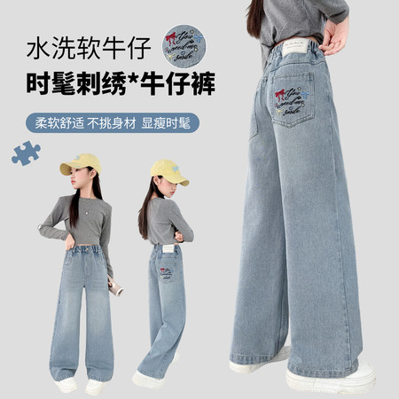 花*鱼收藏“8608后袋刺绣贴标牛仔阔腿裤”
