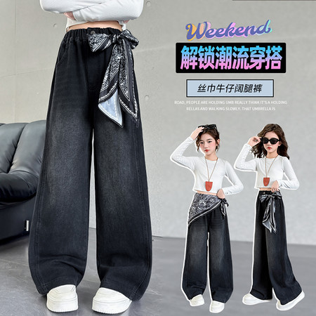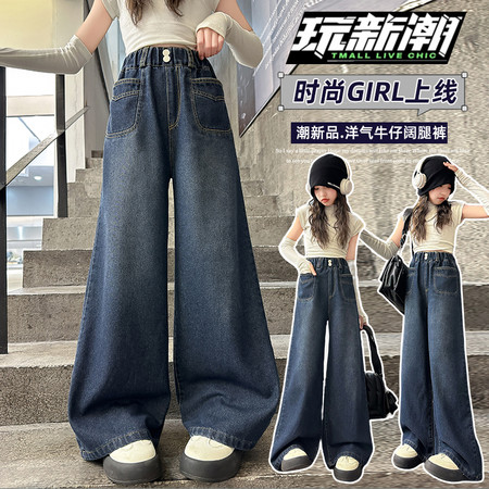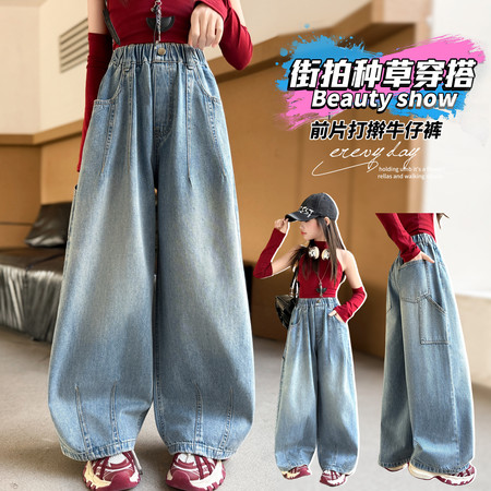 玉*店下载视频“8608后袋刺绣贴标牛仔阔腿裤”