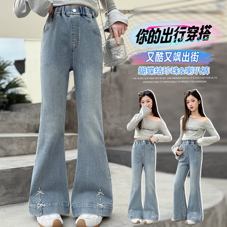 1*4收藏“8605蝴蝶结珍珠喇叭裤”